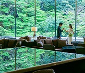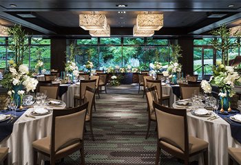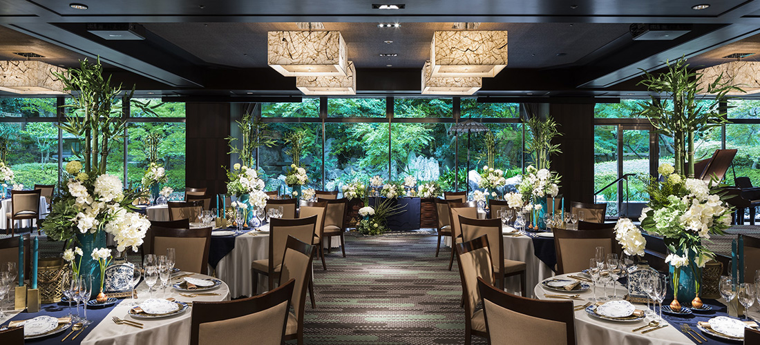 緑豊かな庭園を望む開放感あふれるバンケット