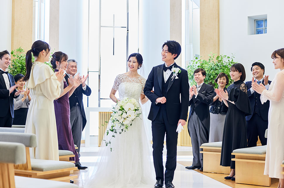 10Mの大理石のバージンロード ゲストの拍手に包まれ 記憶に残るあたたかな式を創ります