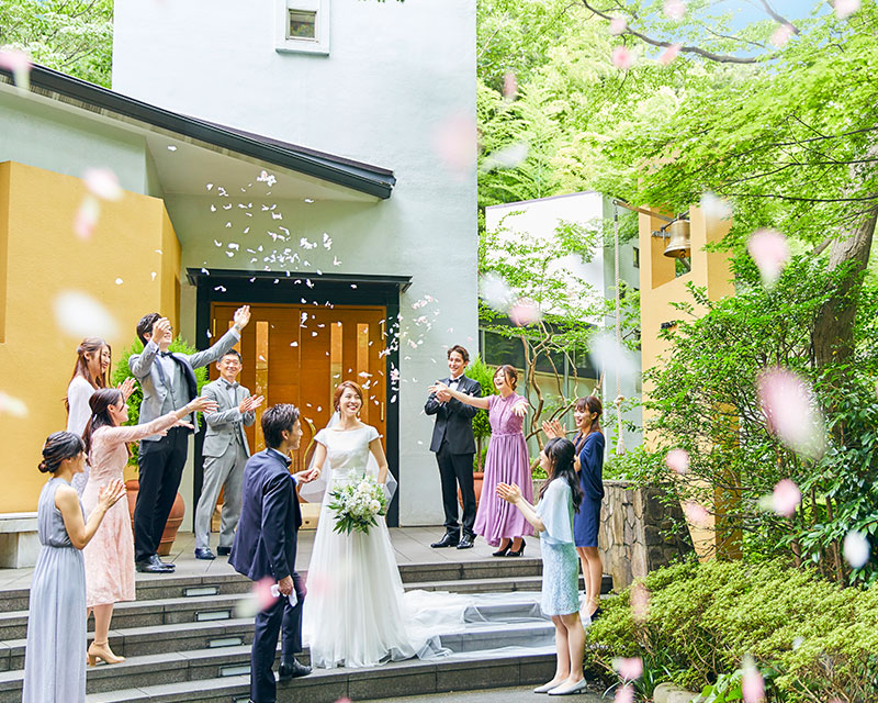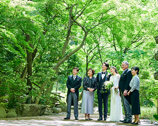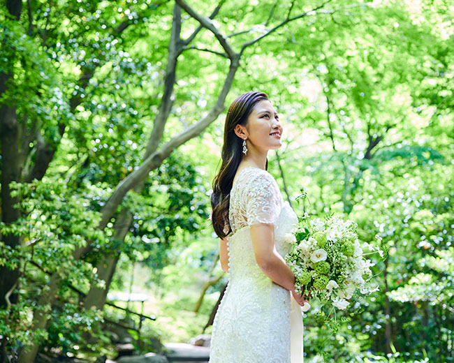 おふたりの永遠の誓いを見守る白金の緑に溶け込む